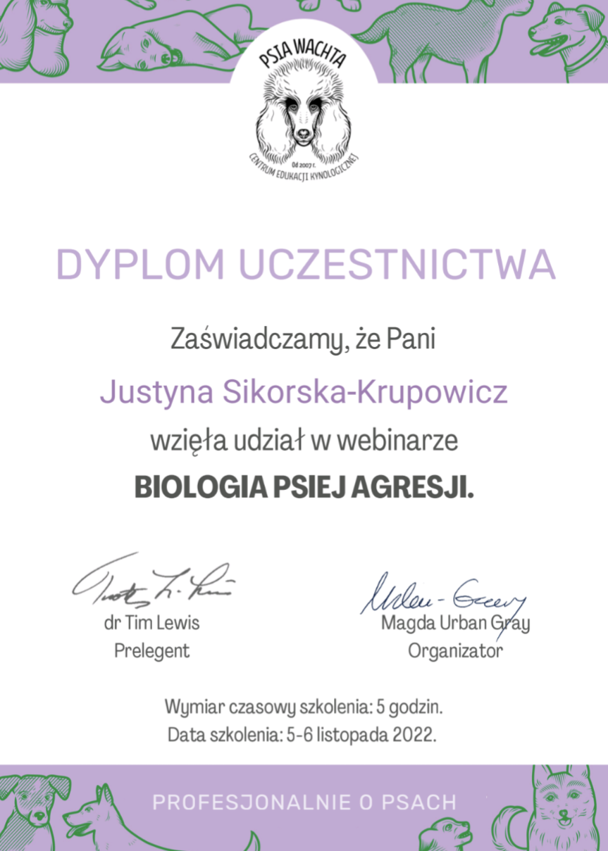 listopad 2022 – webinarium „biologia psiej agresji” – tim lewis (psia wachta)